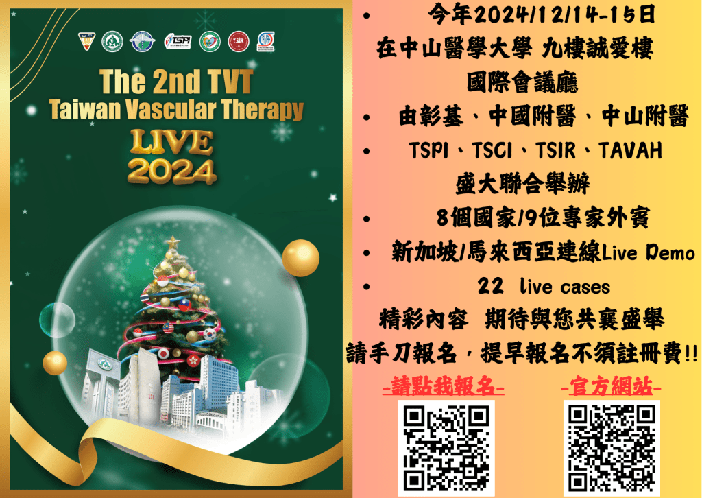 第二屆TVT Agenda 及現場實錄 分類:TSPI台灣周邊血管學會2024 年 12 月 31 日2025 年 5 月 13 日發表於繼續教育 請搭配學會youtube頻道影片 查看您想觀看的部分。台灣周邊血管學會 議程下載 分享此文: 按一下即可分享至 X(在新視窗中開啟) X 按一下以分享至 Facebook(在新視窗中開啟) Facebook 喜歡 正在載入... 相關